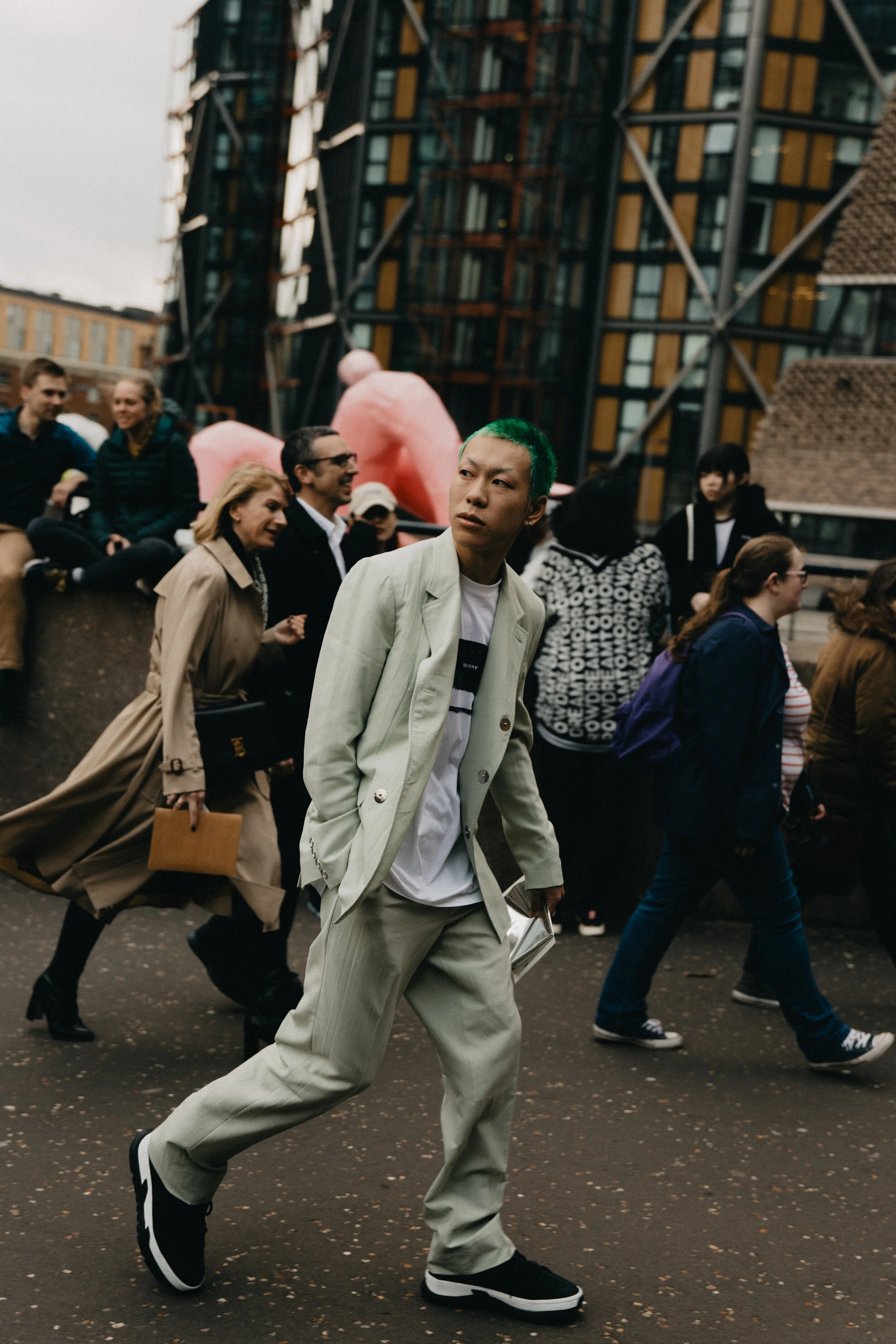 A collection of street style scenes captured on the streets of London during various Fashion Week seasons.
